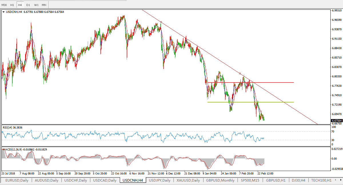 美元兑人民币USDCNH 4小时图: