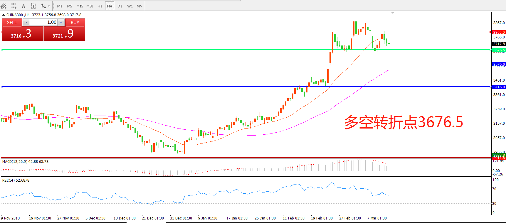 中华指数300CHINA3004小时图