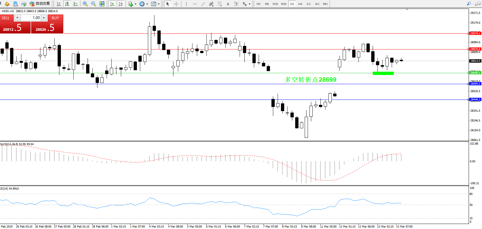 香港恒生指数收盘跌0.4%28807.45点。美国劳工部周三公布的数据显示,2月美国生产者物价指数(PPI)几乎没有上涨,并创下一年半多来的最小同比涨幅。这是通胀温和的最新迹象,支持美联储今年对进一步加息的观望态度。目前港股不跟随外围股市走动的机会非常大,不排除内地有利好政策消息发放,加上近日A股表现强势,故港股现阶段趋向大幅回调言之尚早。不过港股只要失守28860点,回调机会较大;相反,如果能回升触及29300点,有力再行向上。