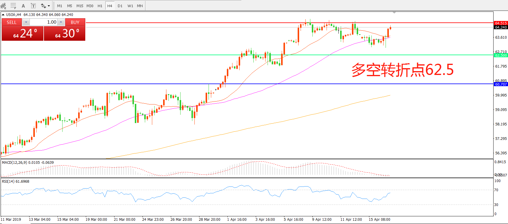 交易策略:在62.50之上看涨,目标64.50    66.50