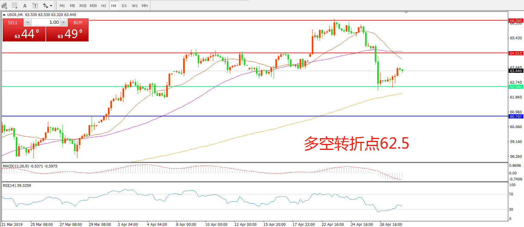 交易策略:在62.50  之上看涨,目标64.50    66.50