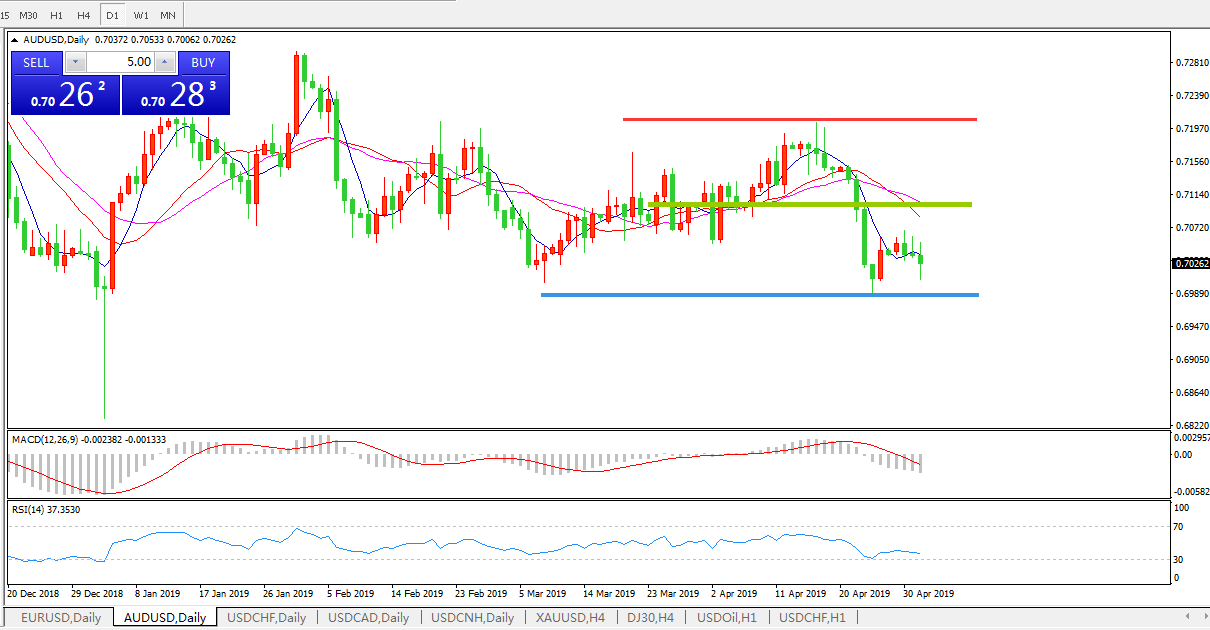 交易策略:在0.7110之下,看跌,目标价位为0.7000,然后为0.6920。