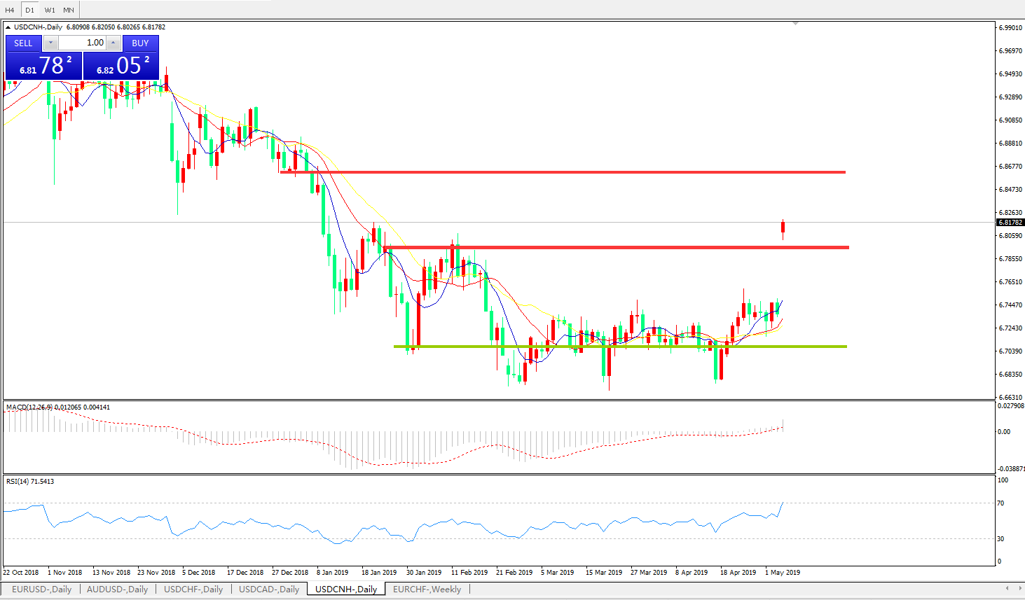 技术面简析:日线均线呈有序多头排列看多汇价大幅度高开,MACD上穿0轴且动能柱0轴上方快速放量RSI急速走升,汇价击穿上方压制继续上行,预计短期汇价或存在整理可能,中期不排除有进一步上行空间,重点关注中美贸易谈判最新进展及特朗普推特更新情况