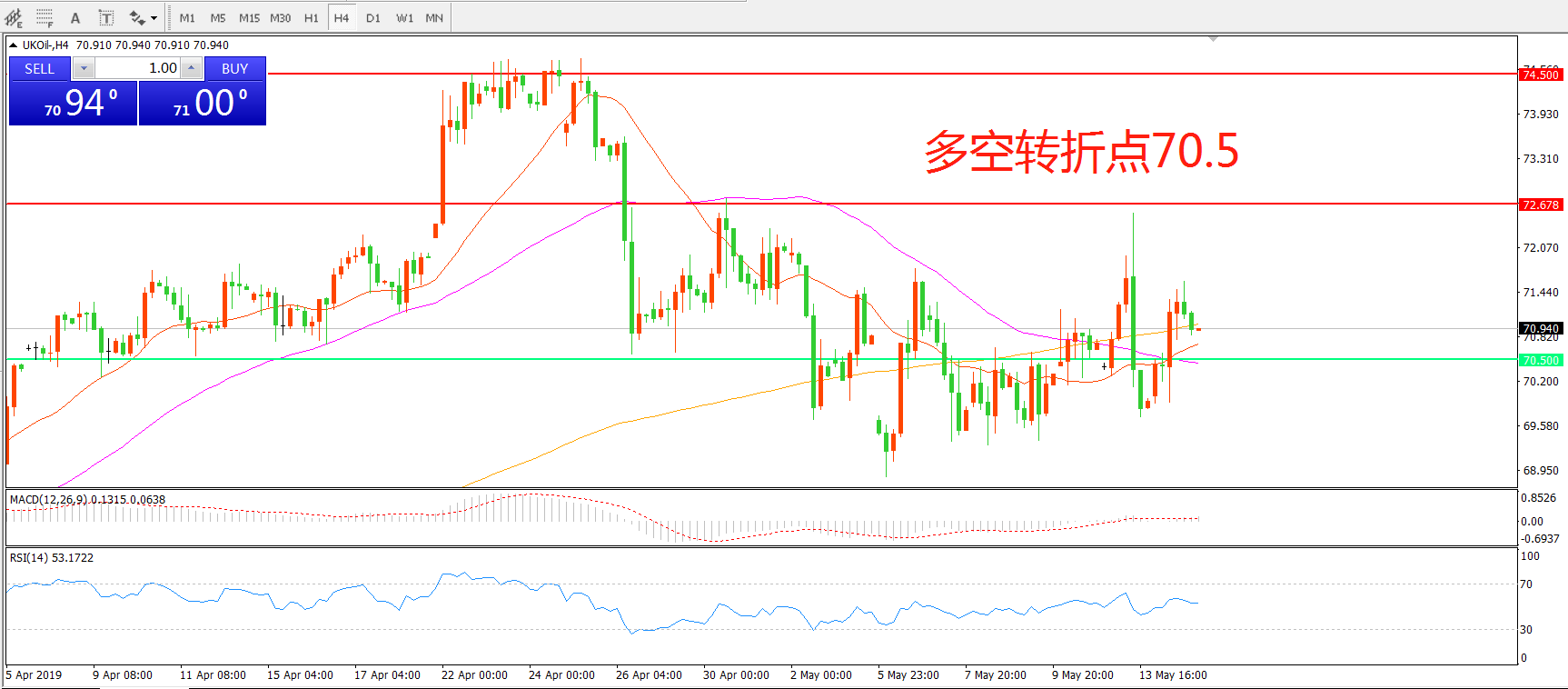 5月14日周二发布的OPEC月报称,4月原油产量比上月减少3000桶/日,至3003.1万/日,原因是伊朗和减产协议受到美国制裁的伊朗,其原油生产量大幅下降至255.4万桶/日,降幅为6%。而受到减产协议影响的沙特,其原油产量也降低至974.2万桶/日。值得一提的是,此前OPEC、俄罗斯和其他非OPEC成员国达成的减产协议是否延长期限,将取决于6月25日至26日举行的会议。而美国能源信息署(EIA)周二发布短期能源展望报告显示,将原油价格及美国原油产量预期双双上调。这为油价提供有效支撑,布伦特原油周二收报70.94美元/桶。