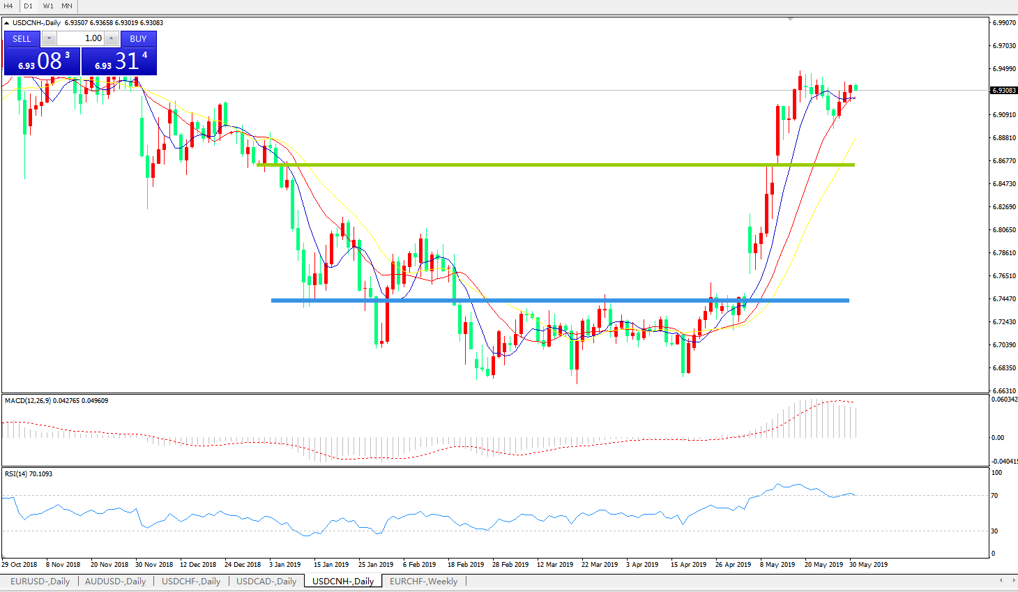 美元周四基本持平,势将连续第四个月月线上涨,因中美贸易僵局促使交易商将资金投入包括美元在内的被认为安全的货币。纽市尾盘,追踪美元兑六种主要货币走势的美元指数跌0.01%,至98.151。美元指数一周前触及98.371,这是20175月以来的最强,尽管交易员加大了对美联储将多次降息的押注,但美元的强势仍在持续。美元人民币延续高位整理,企稳态势明显。