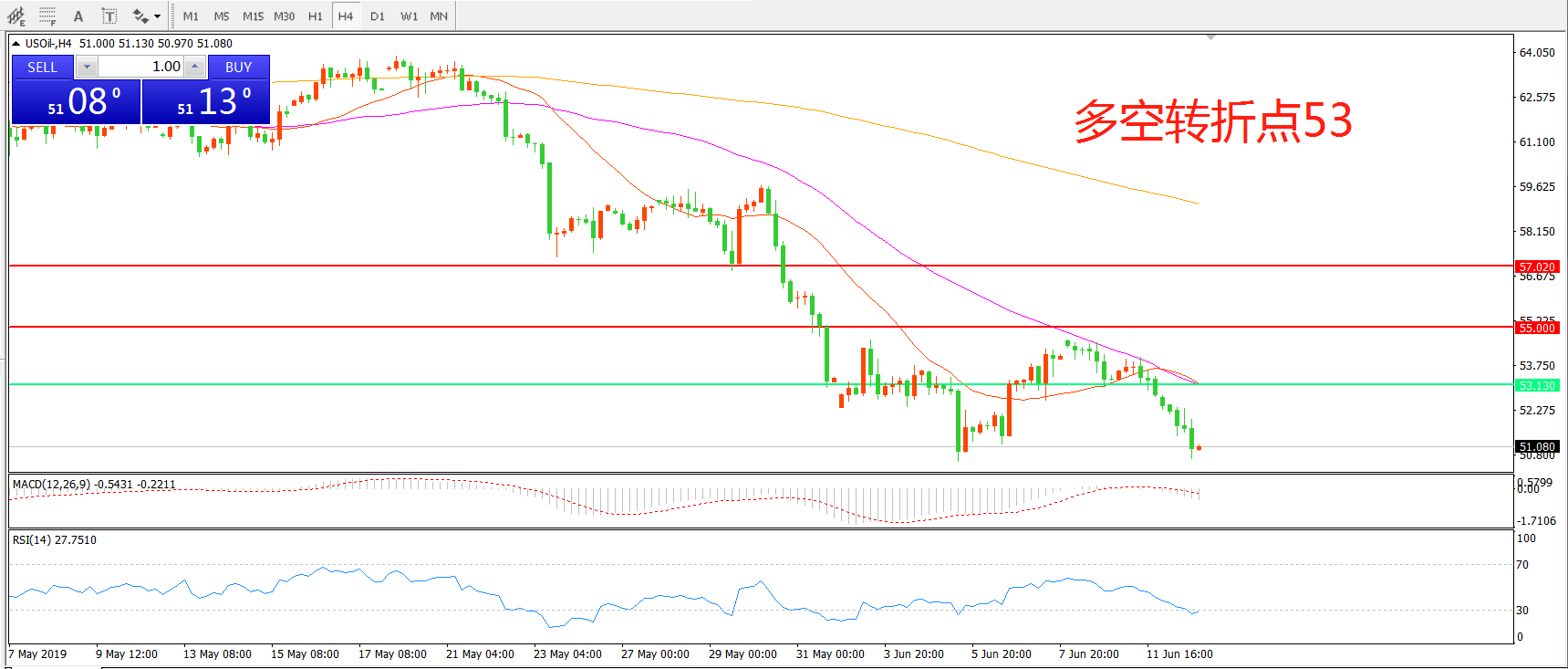 交易策略:在53.00之下看跌,目标50.00 46.00