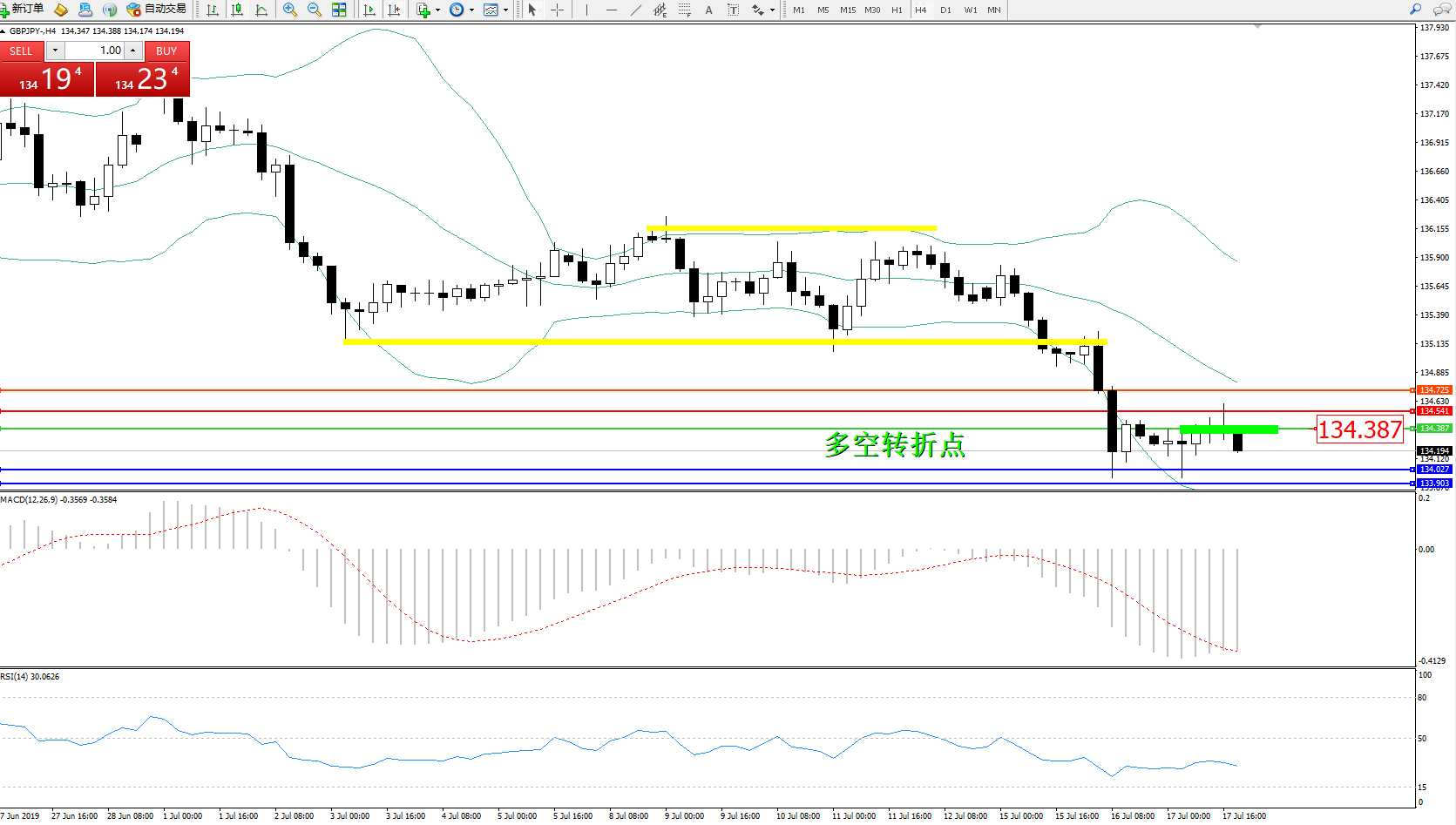 交易策略:134.387下方看跌,目标134.027133.903
