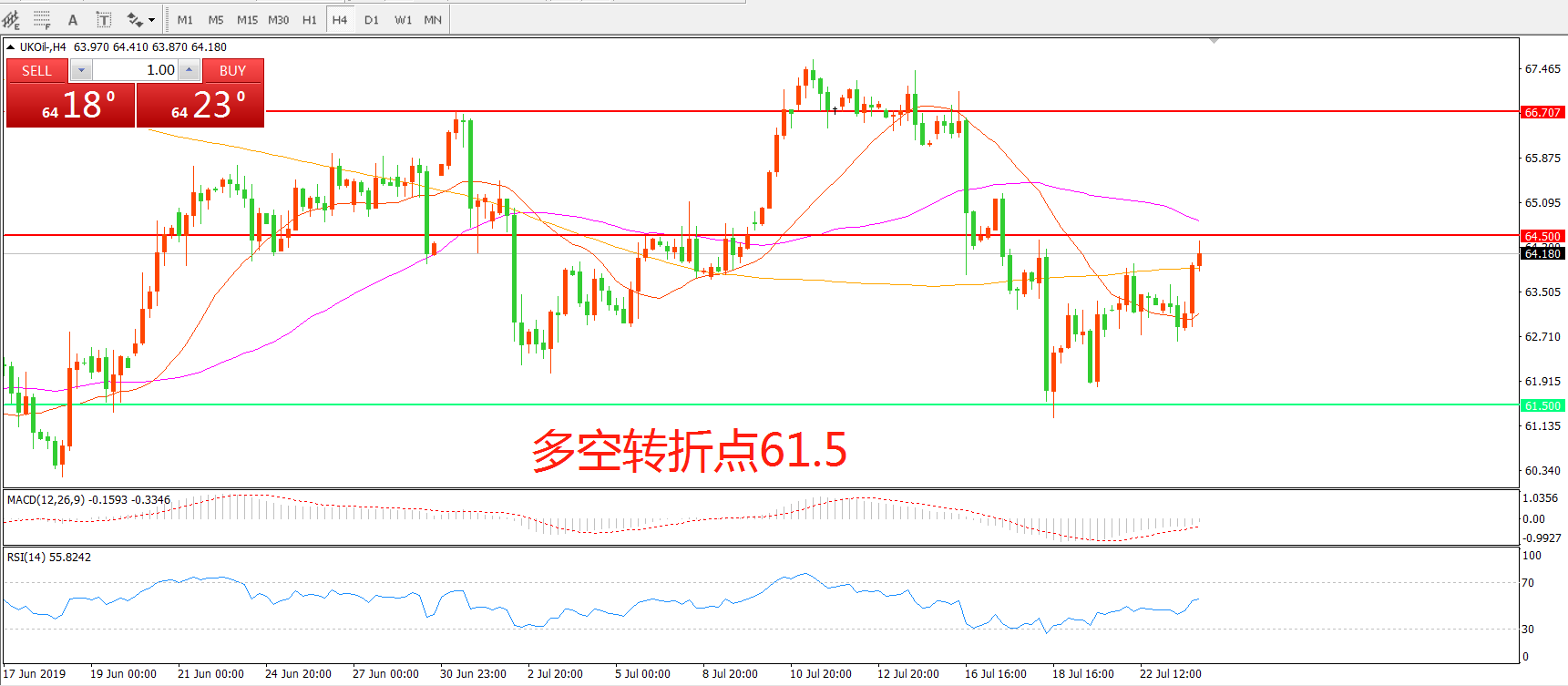 交易策略:在61.50之上看涨,目标64.50   66.70