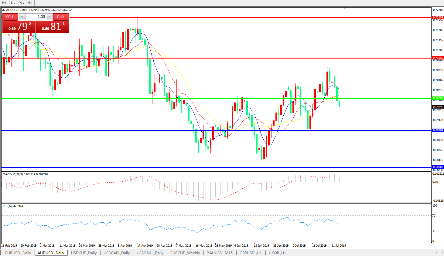 交易策略:0.7000下方看跌,目标0.6920、0.6830