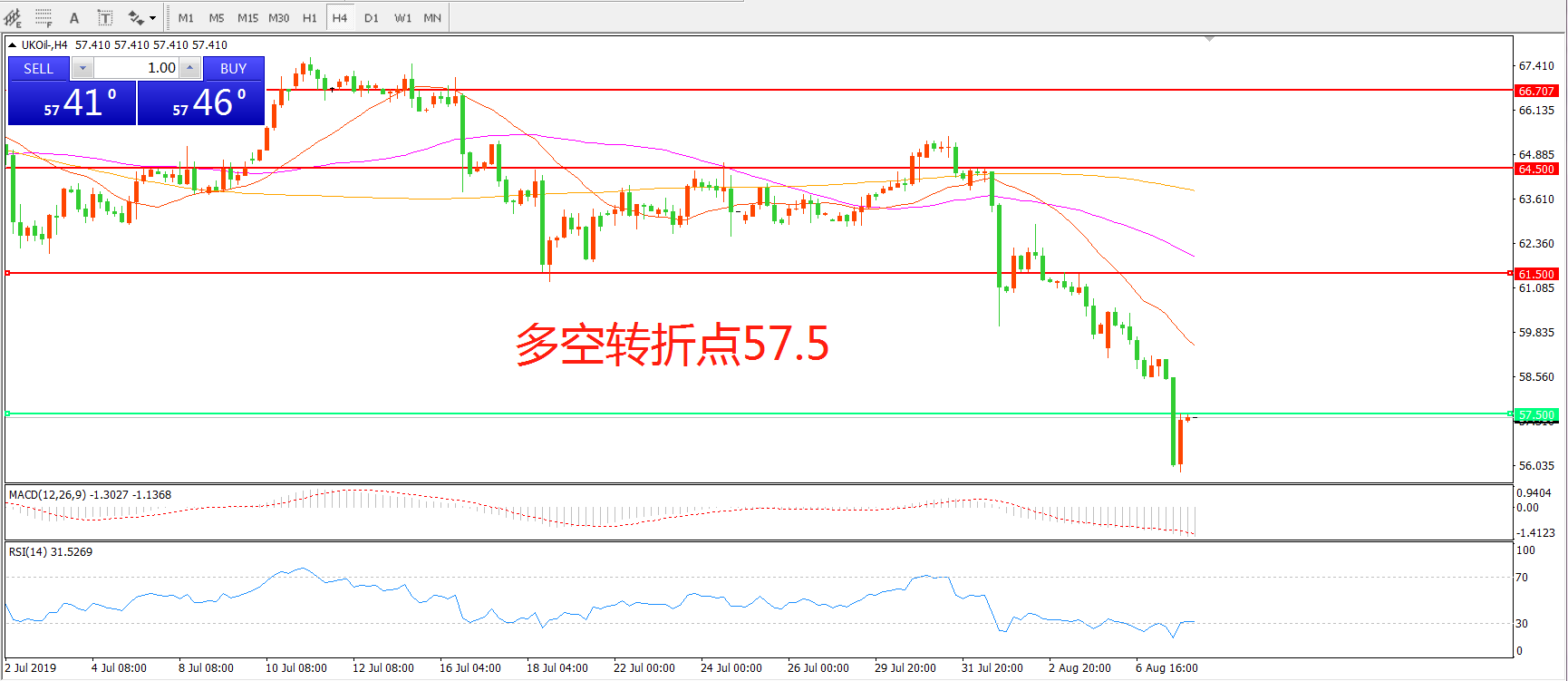 多空转折点:57.50