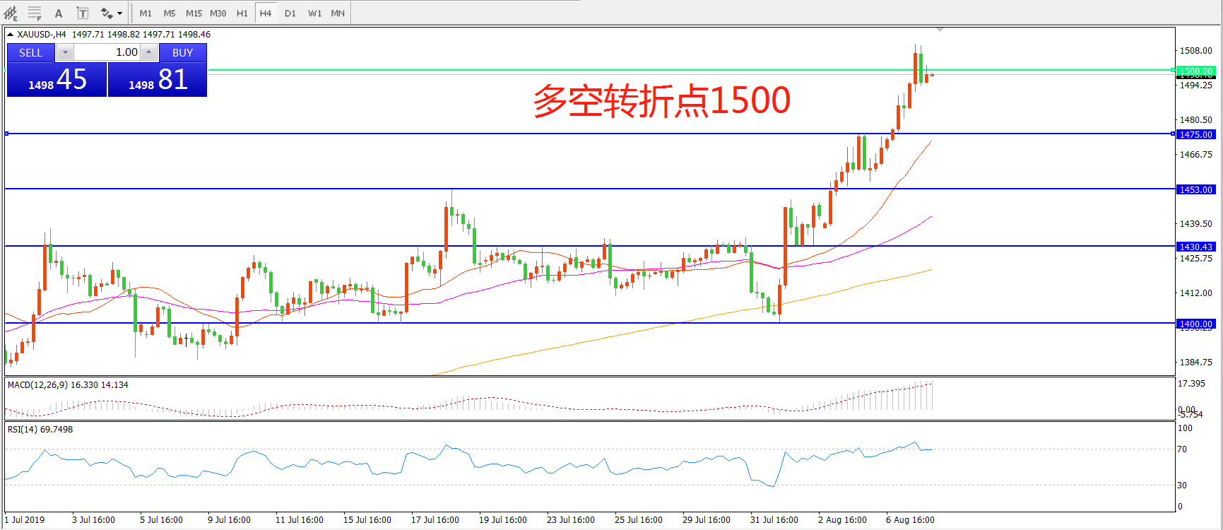 特朗普再度发表强硬言论,敦促美联储降息。特朗普称,美联储必须更大幅、更快下调利率。不过,美联储官员并不认同特朗普大幅度降息的观点。美联储内部最为鸽派的官员——圣路易斯联储主席布拉德周二向白宫传达了一个信息:不要指望每次国际政策威胁或声明令市场陷入混乱时都会有更多的降息。随着世界局势进一步动荡,增强了黄金作为避险资产的魅力,周三(8月7日),现货黄金强劲攀升,价格站上千五关口,最高触及1510美元,最终收报1498.41美元/盎司。