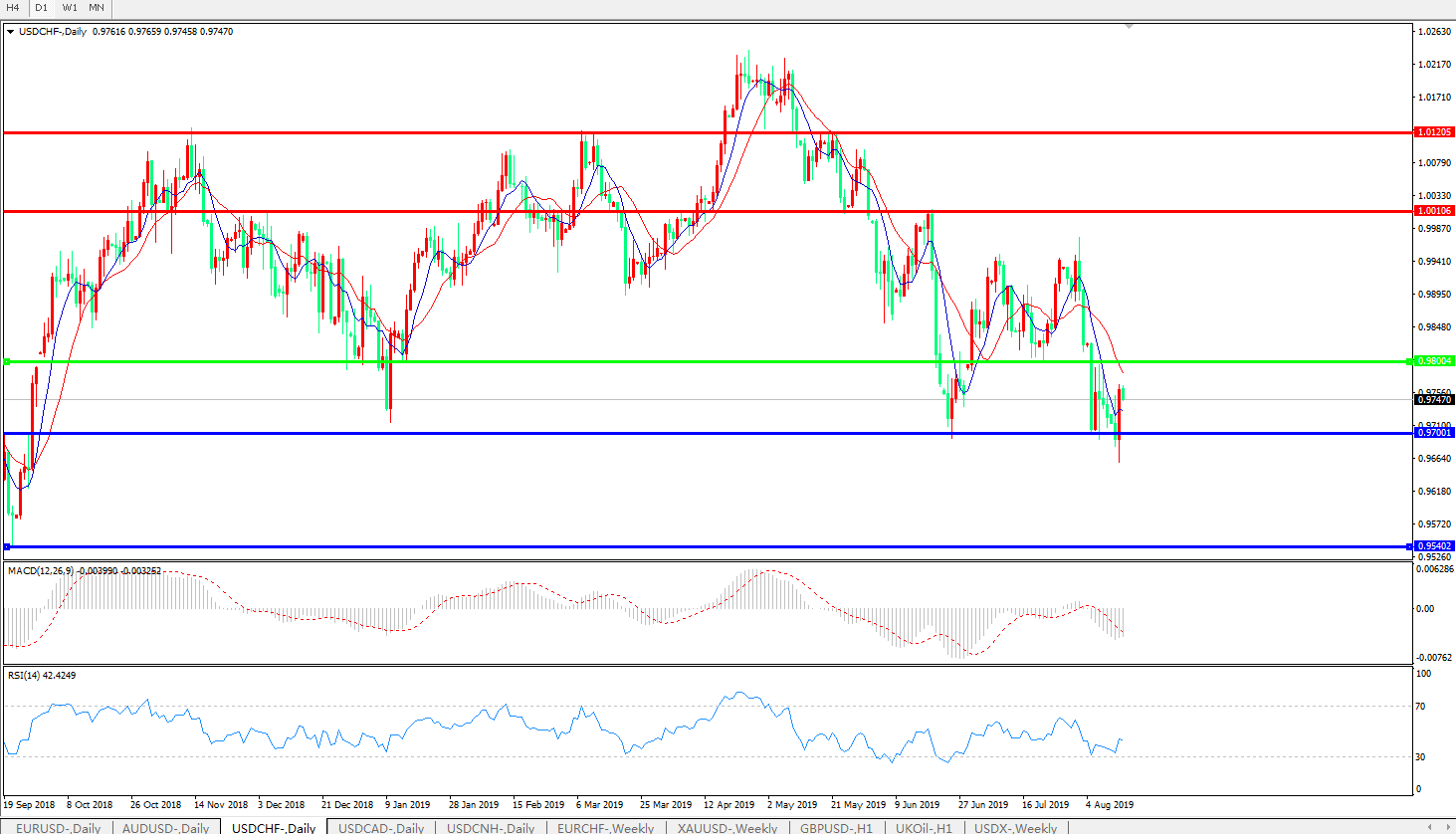 交易策略:0.9800下方看跌,目标0.97000.9542