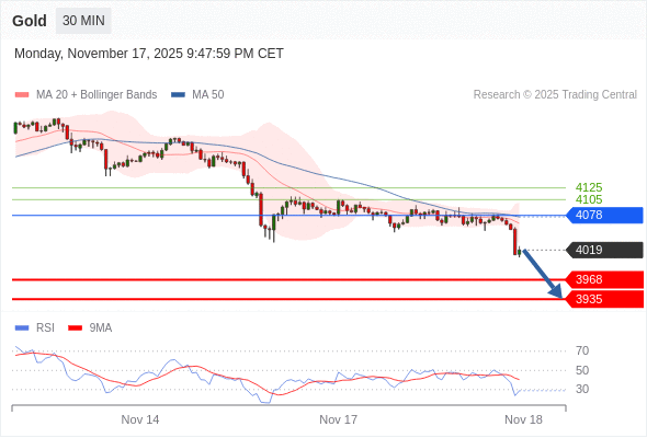 在 4078 之下,看跌,目标价位为 3968 ,然后为 3935 。