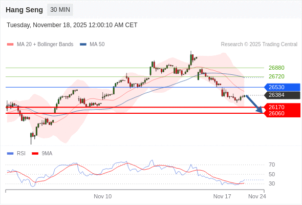 在 26530 之下,看跌,目标价位为 26170 ,然后为 26060 。