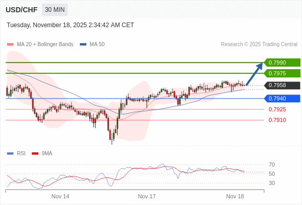 在 0.7940 之上,看涨,目标价位为 0.7975 ,然后为 0.7990 。