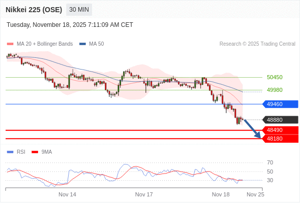 在 49460 之下,看跌,目标价位为 48490 ,然后为 48180 。