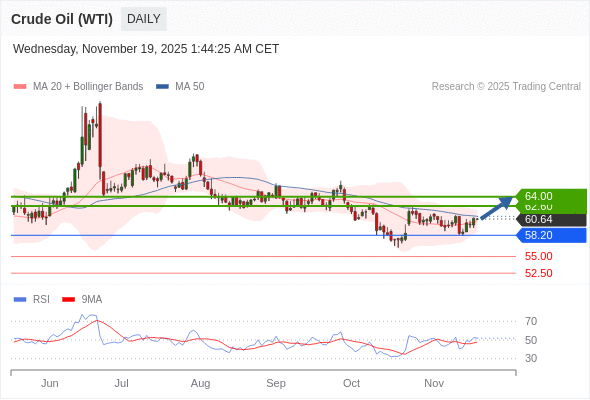 在 58.20 之上,看涨,目标价位为 62.60 ,然后为 64.00 。