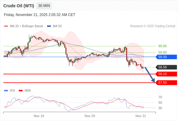 在 59.30 之下,看跌,目标价位为 58.10 ,然后为 57.50 。