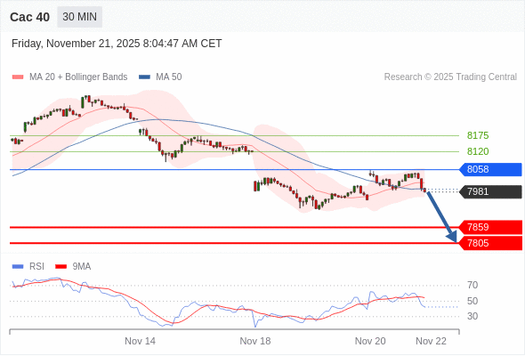 在 8058 之下,看跌,目标价位为 7859 ,然后为 7805 。