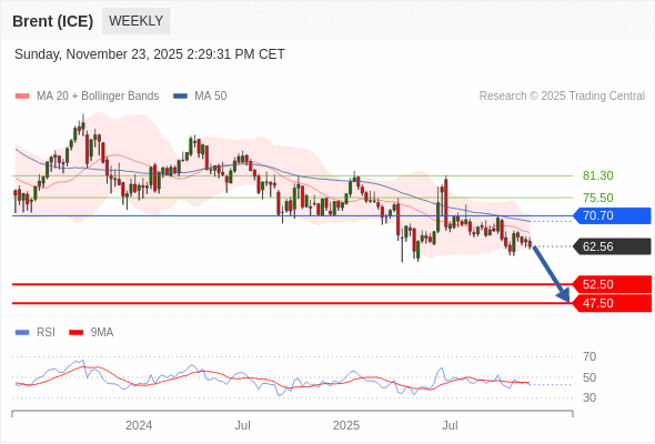 在 70.70 之下,看跌,目标价位为 52.50 ,然后为 47.50 。