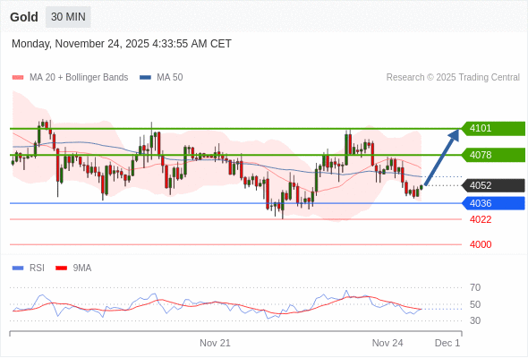在 4036 之上,看涨,目标价位为 4078 ,然后为 4101 。