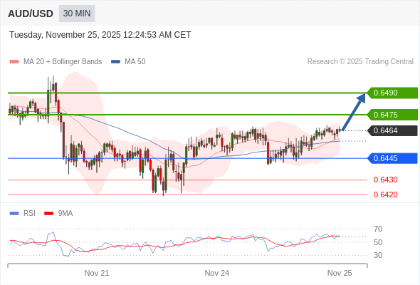 交易策略: 在 0.6445 之上,看涨,目标价位为 0.6475 ,然后为 0.6490 。