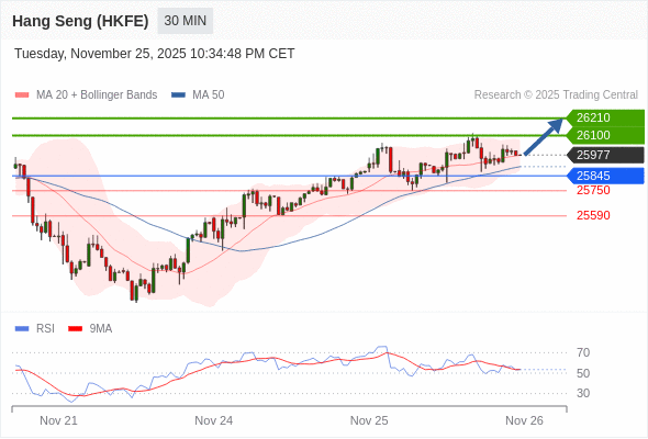 在 25845 之上,看涨,目标价位为 26100 ,然后为 26210 。