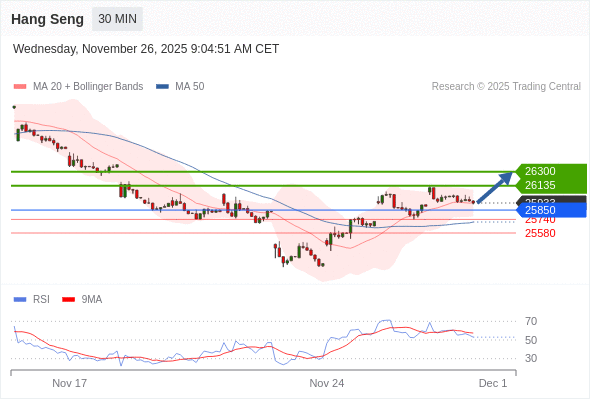 在 25850 之上,看涨,目标价位为 26135 ,然后为 26300 。