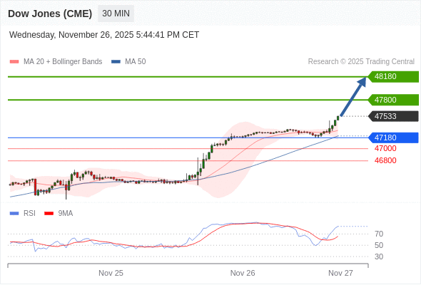 在 47180 之上,看涨,目标价位为 47800 ,然后为 48180 。