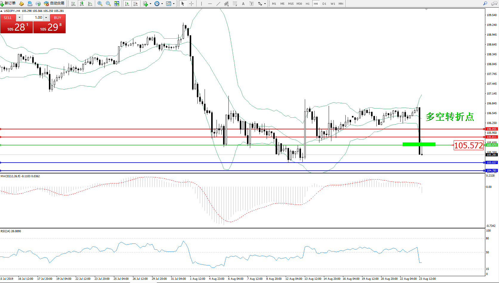 多空转折点:105.572