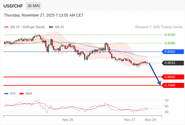 在 0.8060 之下,看跌,目标价位为 0.8000 ,然后为 0.7980 。