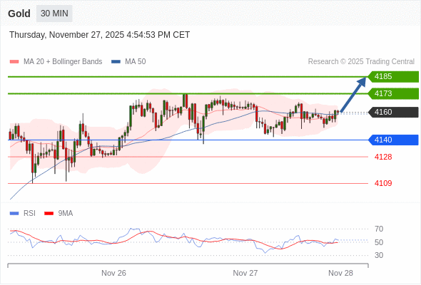 在 4140 之上,看涨,目标价位为 4173 ,然后为 4185 。
