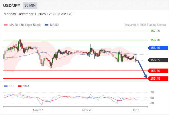 在 156.45 之下,看跌,目标价位为 155.70 ,然后为 155.45 。