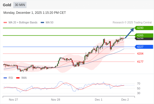 在 4227 之上,看涨,目标价位为 4265 ,然后为 4290 。