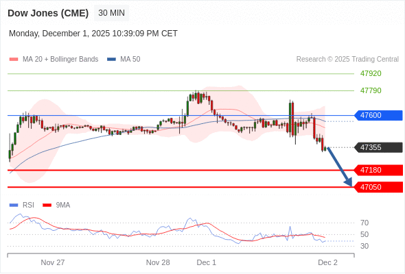 在 47600 之下,看跌,目标价位为 47180 ,然后为 47050 。