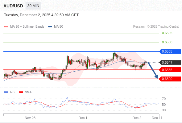 在 0.6565 之下,看跌,目标价位为 0.6535 ,然后为 0.6520 。
