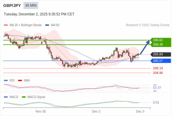 交易策略: 看涨,当 205.57 为支撑位,目标定在206.62。