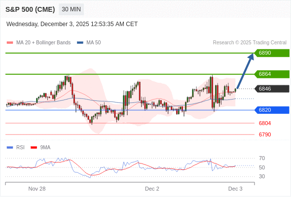 在 6820 之上,看涨,目标价位为 6864 ,然后为 6890 。