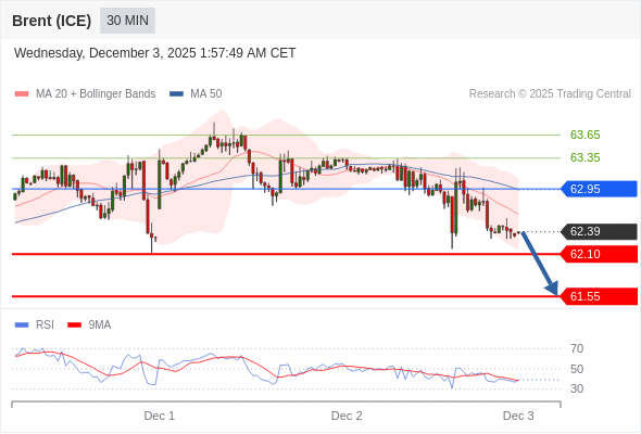 交易策略: 在 62.95 之下,看跌,目标价位为 62.10 ,然后为 61.55 。