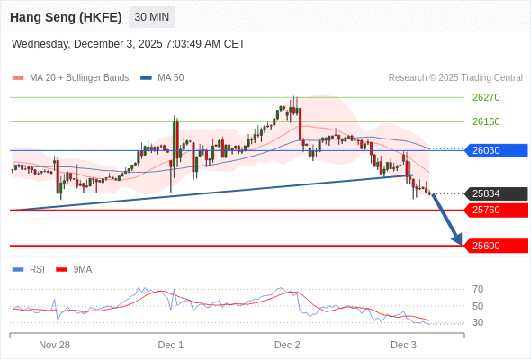 在 26030 之下,看跌,目标价位为 25760 ,然后为 25600 。