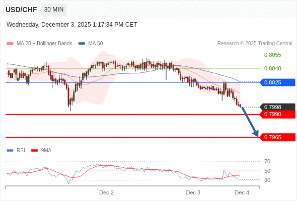 在 0.8025 之下,看跌,目标价位为 0.7990 ,然后为 0.7965 。