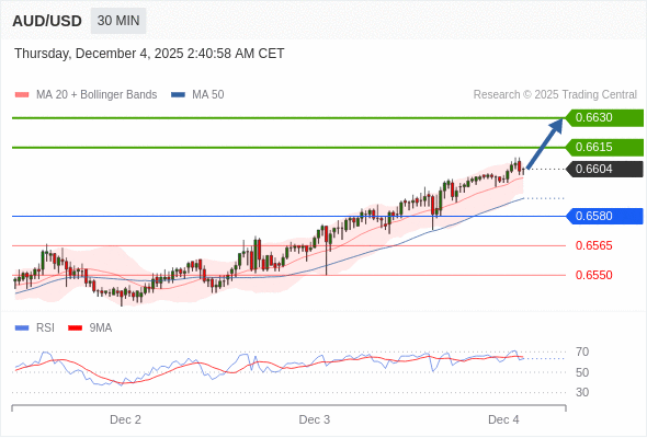 在 0.6580 之上,看涨,目标价位为 0.6615 ,然后为 0.6630 。