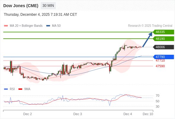 在 47790 之上,看涨,目标价位为 48190 ,然后为 48335 。