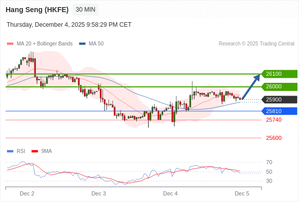 在 25810 之上,看涨,目标价位为 26000 ,然后为 26100 。