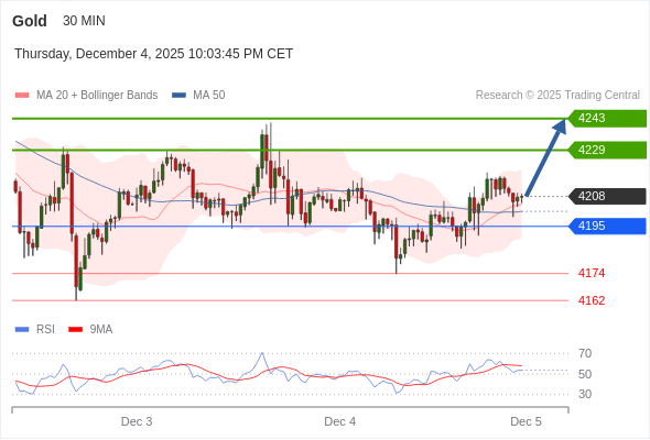 在 4195 之上,看涨,目标价位为 4229 ,然后为 4243 。
