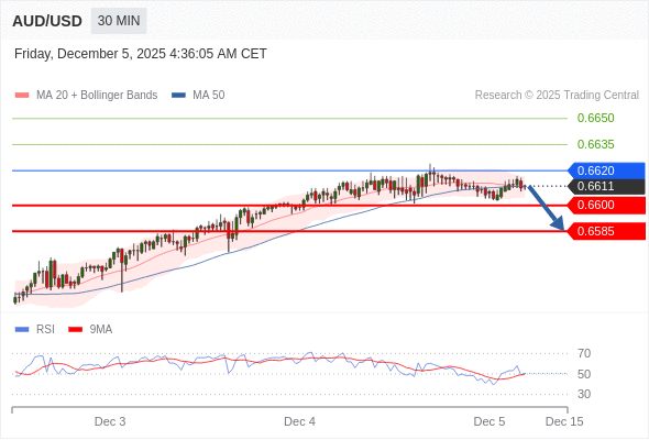 在 0.6620 之下,看跌,目标价位为 0.6600 ,然后为 0.6585 。
