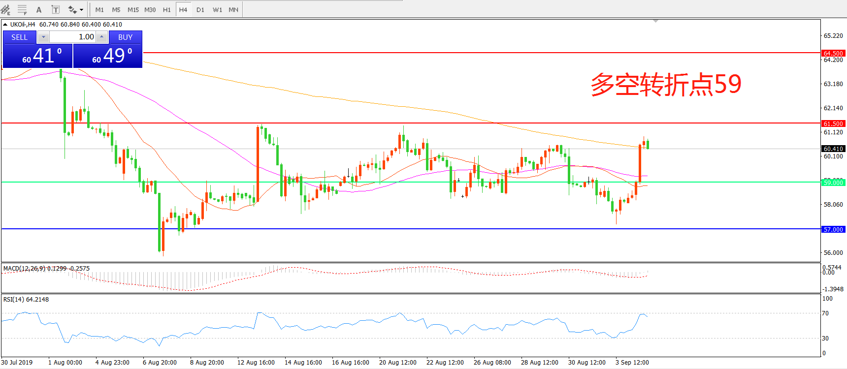 交易策略:在59.00之上看涨,目标61.50 64.50