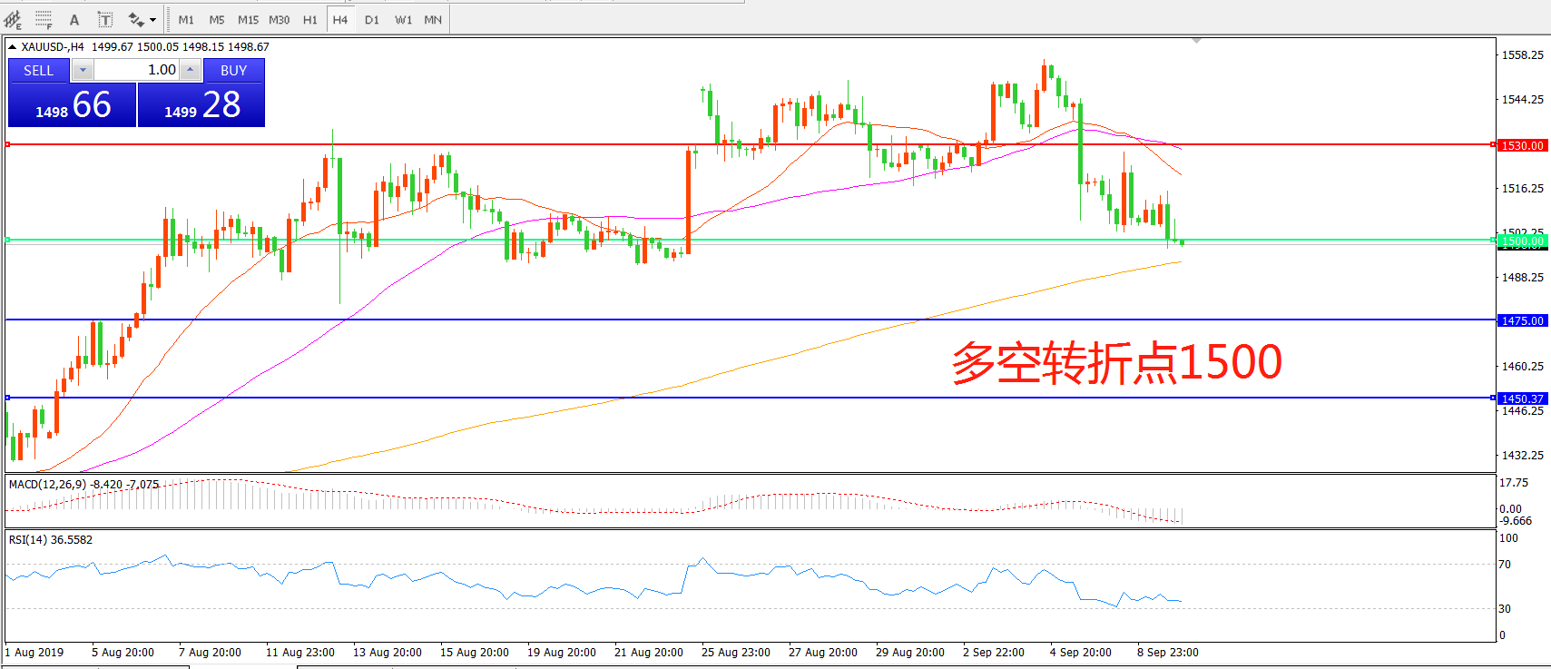 交易策略:在1500.00之下看跌,目标1475.00   1450.00
