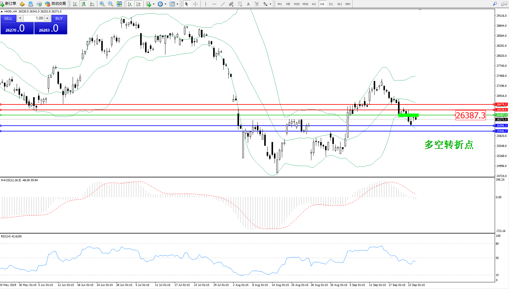 香港恒生指数9月24日(周二)收盘上涨58.60点,涨幅0.22%,报26281.00点;港股节前大概率还会继续下调,如果有1-2天的反弹,也可以理解为跌多了会弹一下。恒指今日最多升近170点,高见26391,续在高位附近上落至收市。恒指已经连跌6日,累计跌超过1130点,为年内最长跌市欧元区9月制造业PMI令人失望,初值为45.6,创2012年10月以来最低水平;欧元区经济未来几个月将进一步恶化。恒指节前大概率还会继续下调,如反弹可理解为跌多了反弹一下,市场暂时处于弱势情况下。