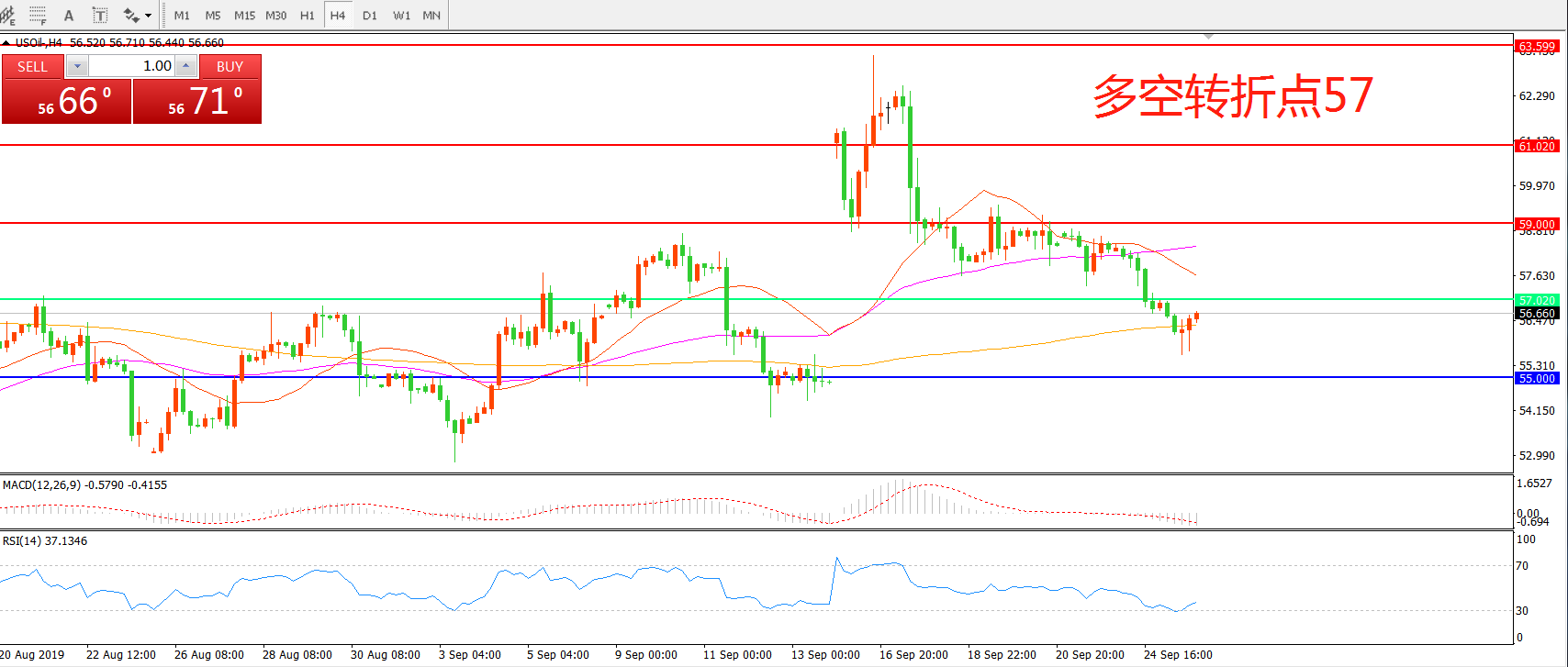 交易策略: 在57.00之下看跌,目标55.00 52.50